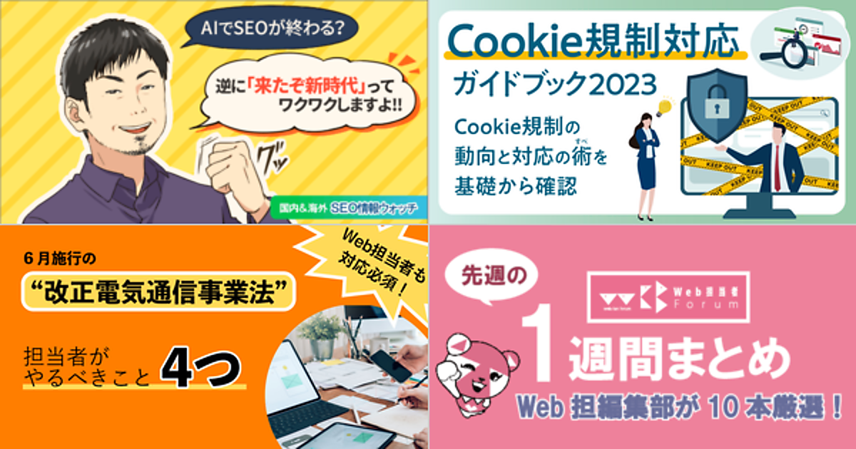Web 担当者 Forum に掲載された情報を毎週一度、まとめてご紹介するこのコーナー、今回は解説記事 5 本とニュース記事 5 本です。