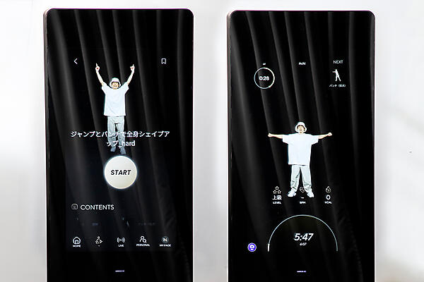 実際にトレーニングしてみると、鏡に映った動画と自身の姿を同時に見ながら体を動かすのは新鮮な体験だった。軽快な音楽に合わせてトレーナーがアシストしてくれるので、モチベーションを維持しながら続けやすい気がした。