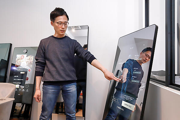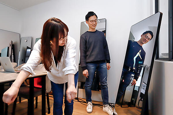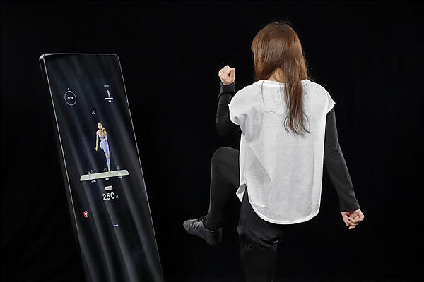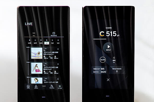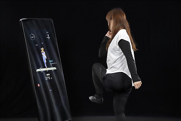鏡の上部にはカメラが付いており、姿勢の正しさをAIによりスコア化するコンテンツもある。正しい姿勢になるほど点数がアップする仕組みだ。また3Dボディスキャン機能も搭載しており、カメラで前面と側面を撮影すると、体のサイズ(胸部、ウエスト、ヒップ、二の腕、太もも)を測定して、部位ごとにおすすめのレッスンを紹介する。