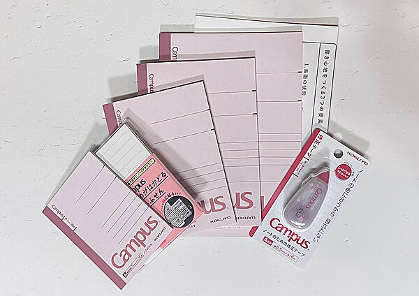 - マニアセット(キャンパスノート): A7からB6までのキャンパスノートや修正テープ、ふせんが入ったセット(1,000円)