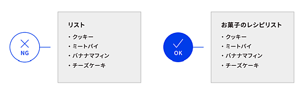 例えば、見出しが「リスト」だけではなんのリストかわかりません。