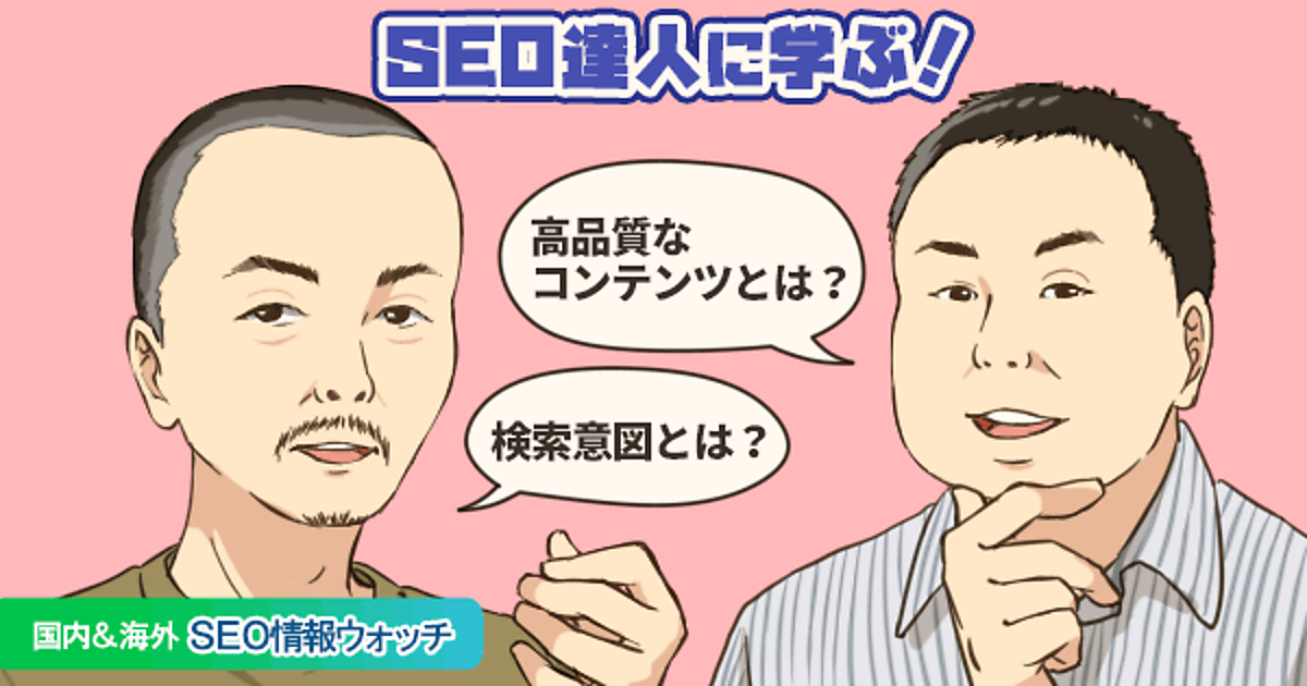 今週のピックアップは2記事。SEO業界の達人である住氏と渡辺氏による、「検索意図」「高品質なコンテンツの定義」の情報をお届けする。「検索意図? それぐらい知ってるよ」というあなたこそ、ぜひ読んでほしい良記事と、「なるほど、高品質なコンテンツの正しい考え方はこうか」とわかる良ツイートだ。