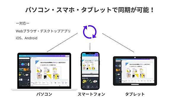クラウドサービスなので、同じアカウントでログインすれば、別のデバイスでも作業を継続できる。UIはそれぞれのデバイスで使いやすいように最適化されている。