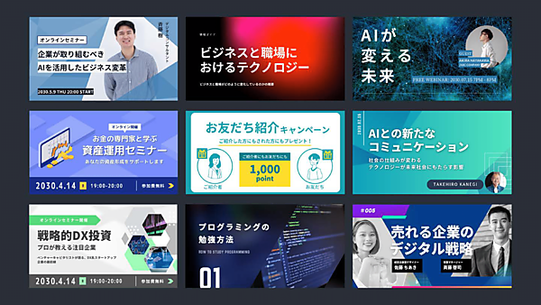 ここからは、Canvaで提供されている豊富なテンプレートと便利な機能を紹介する。下図は、Canvaで作ることができるビジネス向けクリエイティブだ。