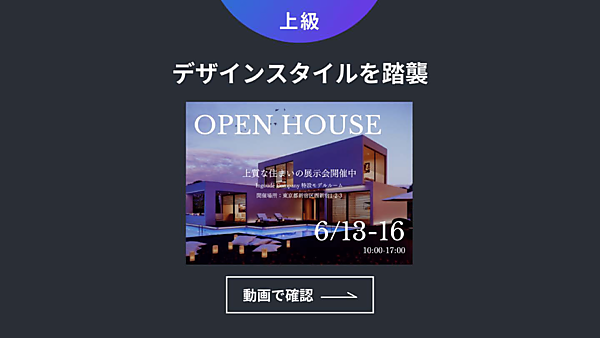 最後に、「デザインスタイルを踏襲して他のテンプレートに転用する」方法だ。ポイントは、フォントや余白の取り方などを参考に、他の業種や商品のクリエイティブとして利用すること。上図の場合は、