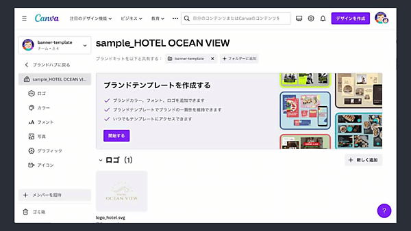 ブランドハブとは、決まったロゴや写真、フォントなどをあらかじめセッティングできる機能のこと。コーポレートカラーなどを登録しておくことで、誰が作っても常に統一感のあるデザインを制作でき、品質維持につながる。
