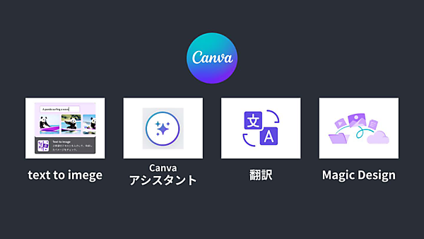最後に、昨今話題のAI活用について、Canvaで利用できる4つの機能が紹介された。