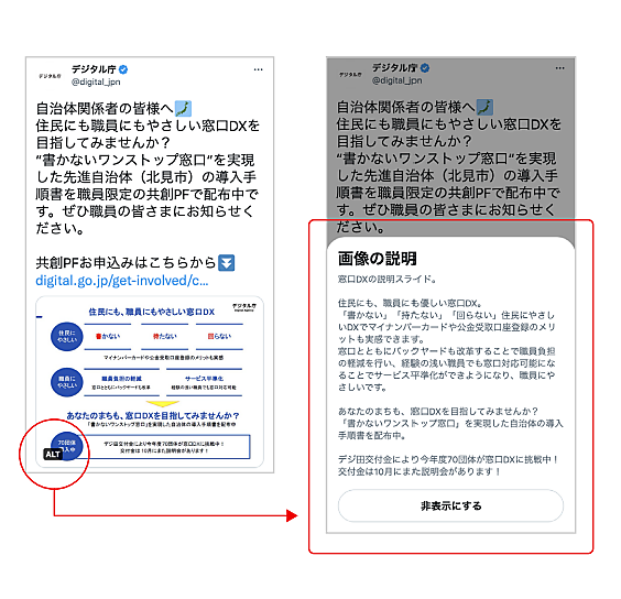 - SNSで発信する場合、画像にどのような代替テキストを付与するか