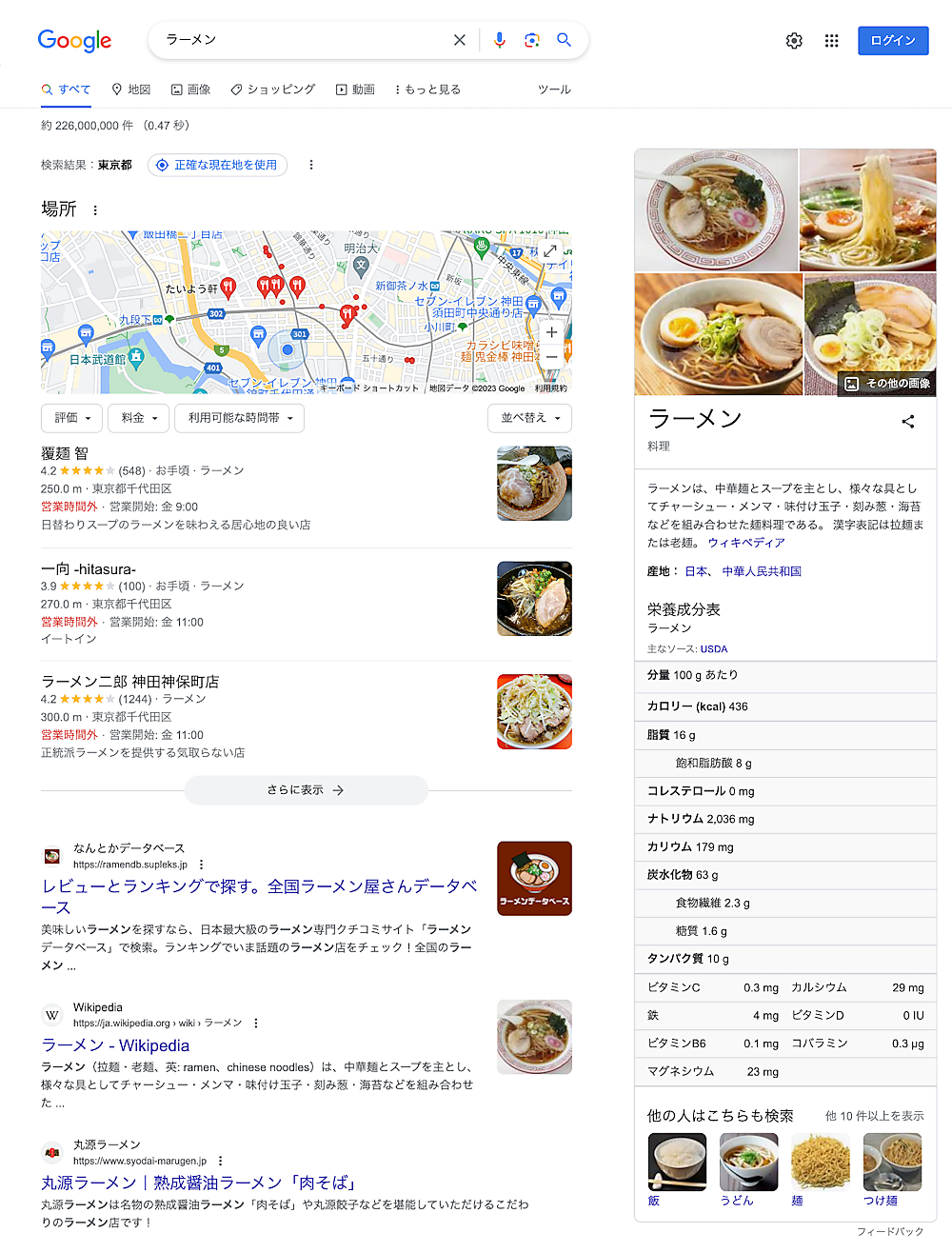 最初の例はクエリ「ラーメン」です。