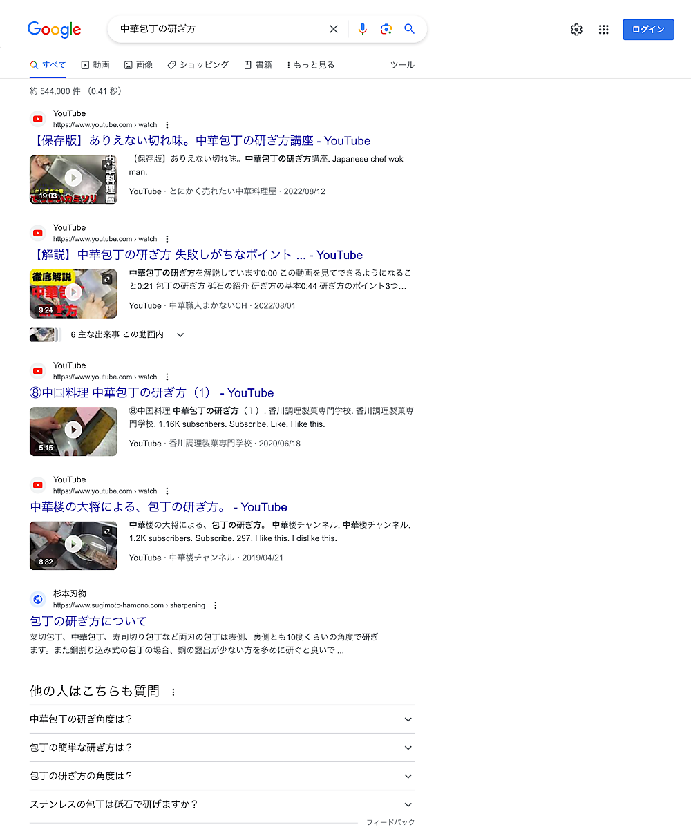 最後の例はクエリ「中華包丁の研ぎ方」です。