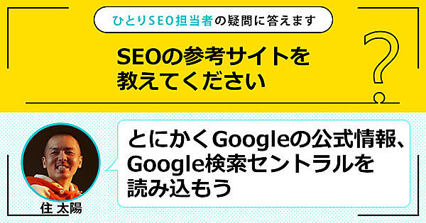 ひとりで頑張るSEO担当者さんの悩みに答える本連載。今回の質問は「SEOの参考サイトを教えてください」です。この回答は「とにかくGoogleの公式情報、Google検索セントラルを読み込もう」です。Googleが発信している情報はSEO初心者向けの基礎知識をカバーしているだけでなく、中・上級者に役立つ重要なヒントもたくさん隠れています。