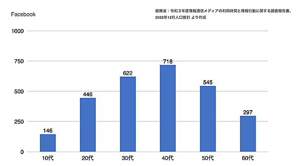 ご参考までに、Facebook年代別ユーザー割合を載せておきます。50代や60代も一定のアクティブ率を保っていることがわかります。