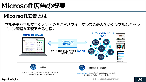 続いて、粂野氏よりMicrosoft 広告についての紹介があった。2022年5月末にローンチされたMicrosoft 広告の主力メニューは、Microsoft 検索広告とMicrosoft オーディエンスネットワーク(MSAN)だ。