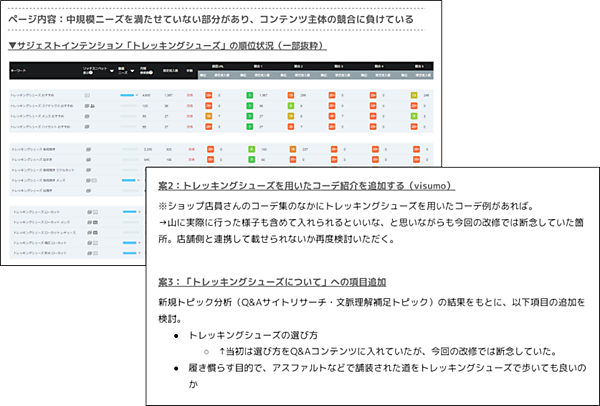 この分析結果をもとに、「ショップ店員のコーディネート例を掲載すべき」「シューズ選びの疑問点に答える文章を追加したほうが良い」など、コンテンツの内容にも手を加えたという。