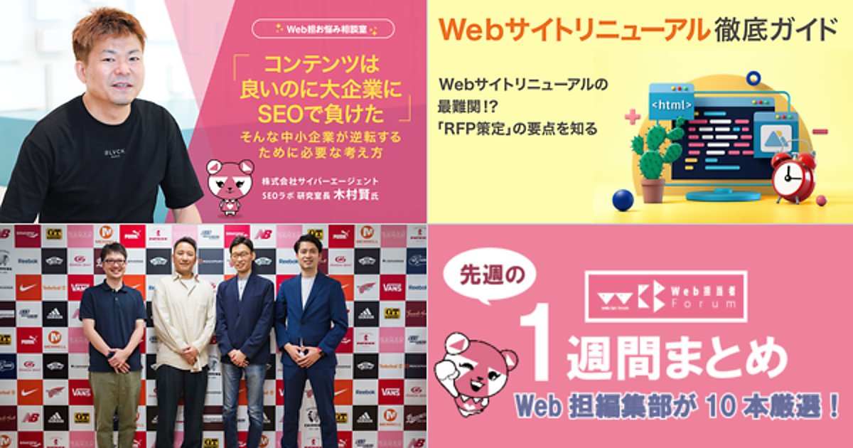 Web 担当者 Forum に掲載された情報を毎週一度、まとめてご紹介するこのコーナー、今回は解説記事 5 本とニュース記事 5 本です。