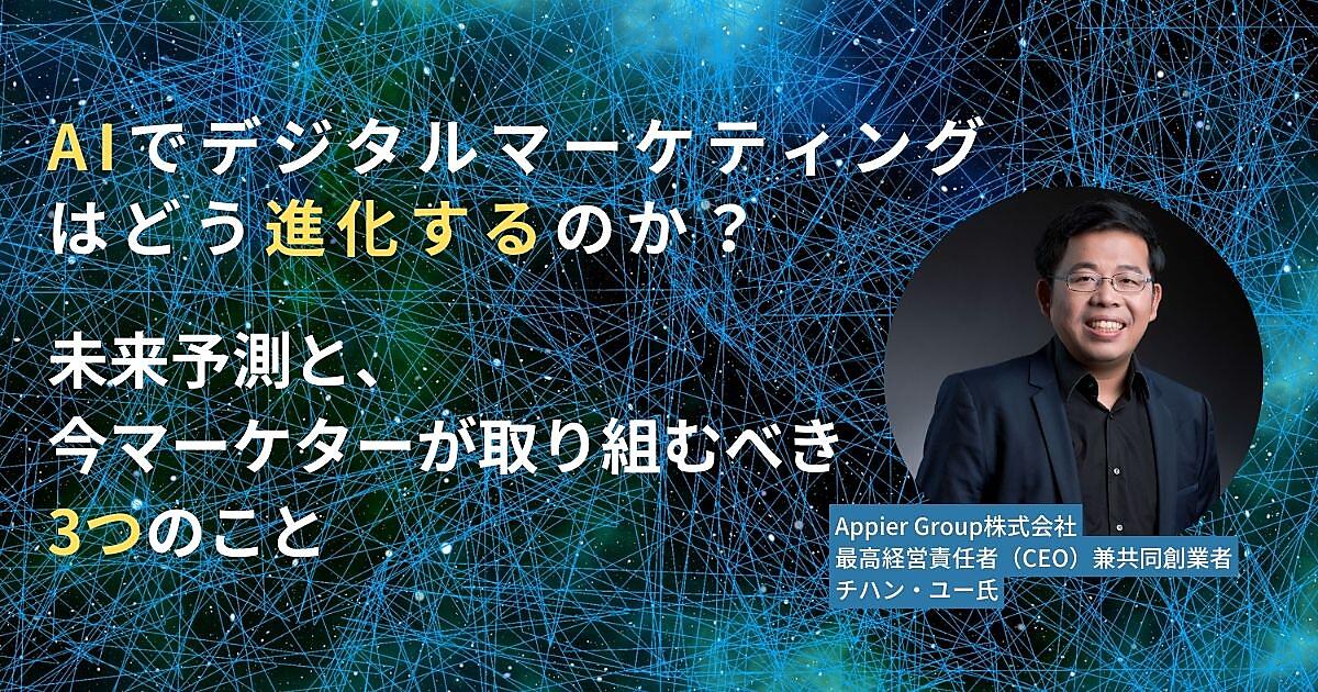そこで“AIの民主化”をビジョンに掲げ、AI×マーケティング事業をグローバルに展開するAppier(エイピア)の共同創業者であり、CEOのチハン・ユー氏を取材。20年以上もAIの研究に携わってきたチハン氏に、AI業界の未来予測と今マーケターがやるべきことについて伺った。