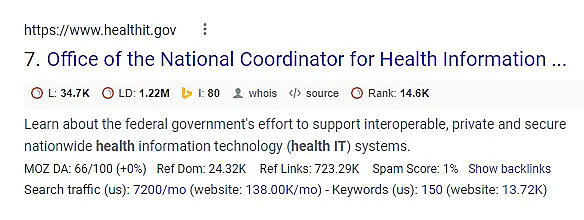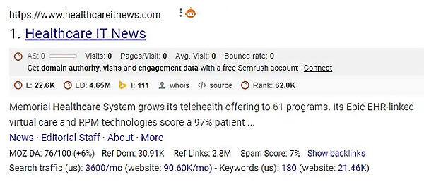 B2Bのテクノロジ企業Healthcare ITの例で考えてみよう。検索エンジンで「healthcare IT」というクエリを入力すると、検索結果の1ページ目には次のようなコンテンツが表示される。