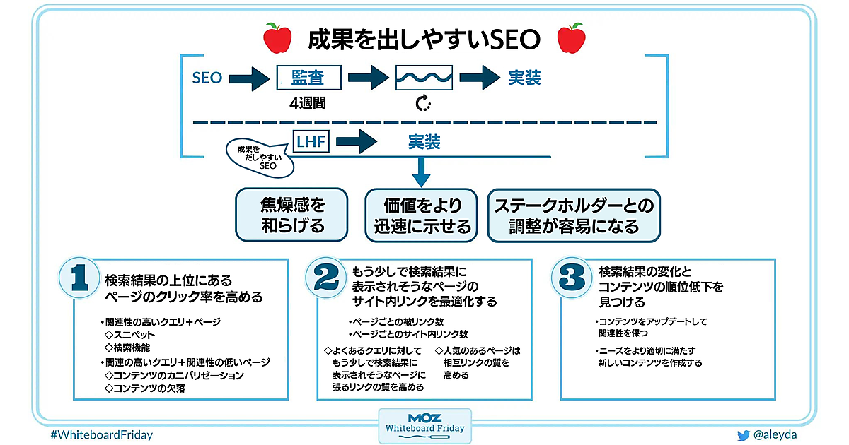 ※Web担編注 「LHF」は「Low-Hanging Fruit」の略で、「低いところにぶらさがっている果実」の意味から「比較的簡単に得られる結果」を表す言葉。