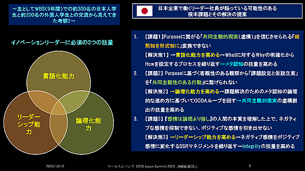 続いて、日本のリーダーに足りていない3つの技量と身につける方法について解説した。