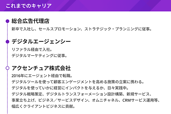 総合広告代理店からデジタルエージェンシー、そしてコンサルティング業界へ。未経験で専門的な業界へのチャレンジをする転職だといえる。その原動力はどこにあるのだろうか。