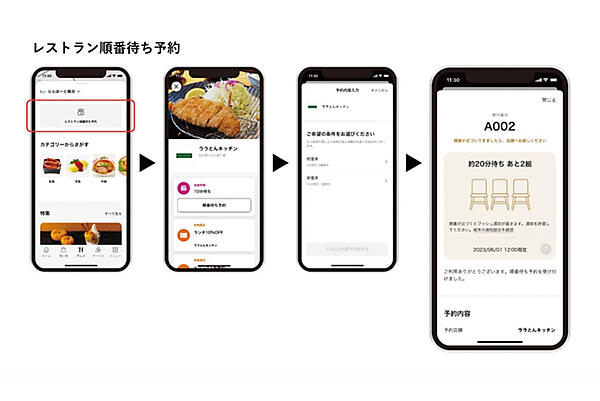 デジタルマップの追加に合わせて、「レストラン順番待ち予約」機能も追加した。この機能では、デジタルマップから店舗を選択すると「待ち時間」や「待ち組数」を確認しながら順番待ちができ、順番が近づいたらプッシュ通知やメールでお知らせされる。
