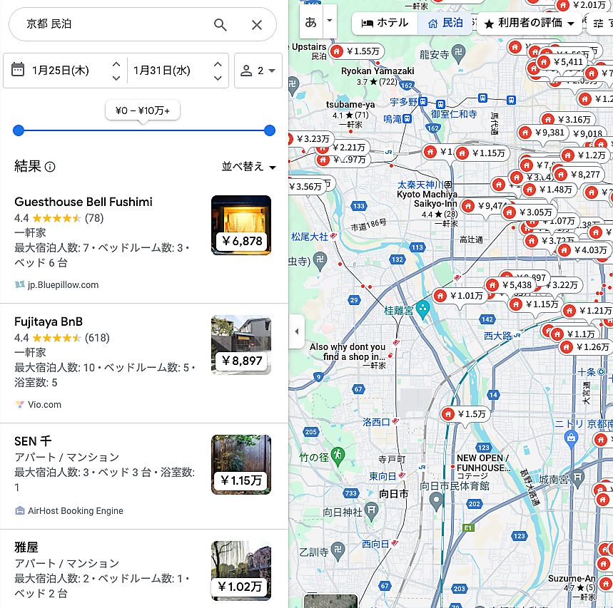 トラベル系サイトで民泊施設も取り扱っているなら利用を検討するとよさそうだ。技術的な要件は検索セントラルサイトのドキュメントを参照してほしい。