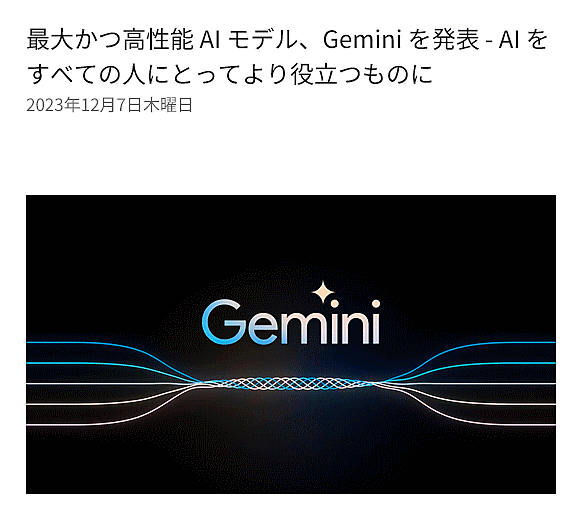 従来のAIモデルよりもさらに高性能なAIモデルとして、Gemini(ジェミニ)をグーグルは発表した。