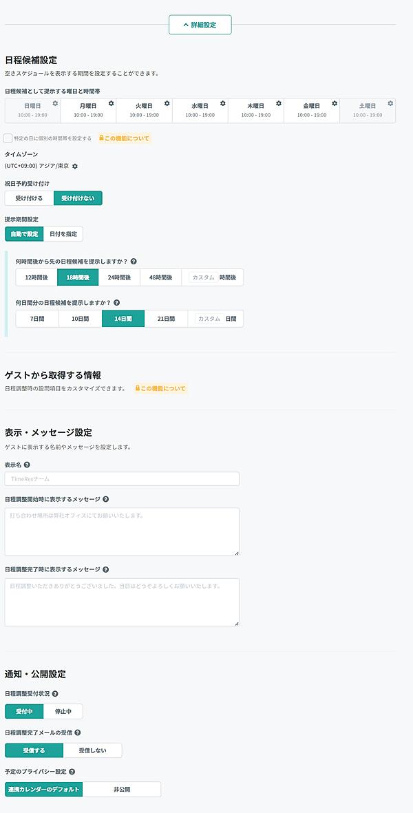 「ユーザーがもっと便利に使いたいと思ったタイミングでカスタムできるように」という思いは、日程調整の詳細な設定のデザインにも表れており、全体を通して、必要なものを最小限に絞りつつ、アクセスしやすいルートを確保することも大切にした設計となっている。