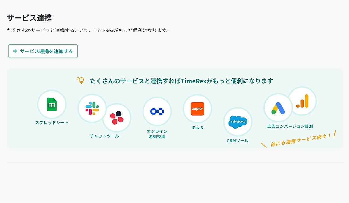 さまざまなサービス連携が可能だからこそ、サービス連携に関しては別ページに遷移するように設定した。実は最初は日程調整カレンダー作成画面上にサービス連携の画面も入れていたが、連携可能なサービスが多いため情報量が増え、さらに連携を望まないユーザーにとっては不要な情報が目に入っていたことで、日程調整カレンダーの作成完了率が下がってしまっていた。