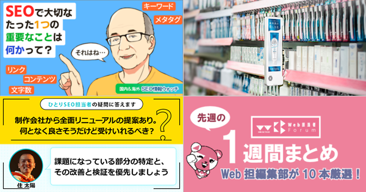 Web 担当者 Forum に掲載された情報を毎週一度、まとめてご紹介するこのコーナー、今回は解説記事 5 本とニュース記事 5 本です。