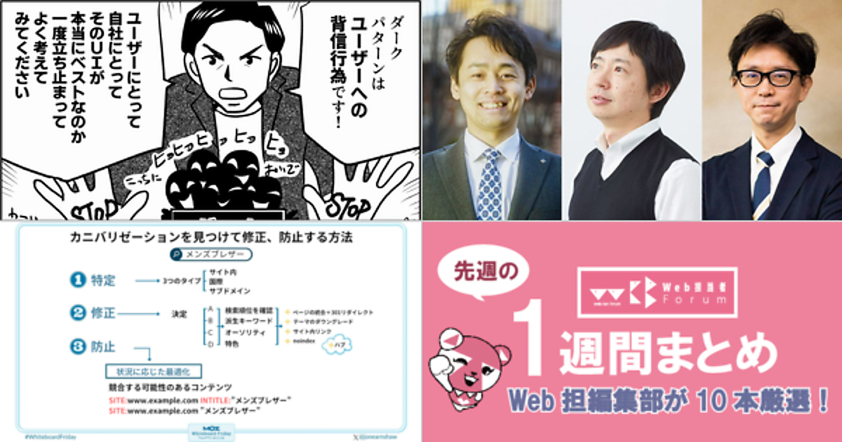 Web 担当者 Forum に掲載された情報を毎週一度、まとめてご紹介するこのコーナー、今回は解説記事 5 本とニュース記事 5 本です。