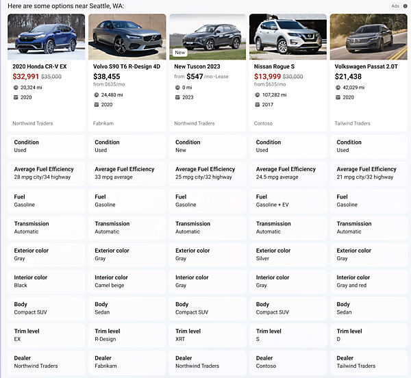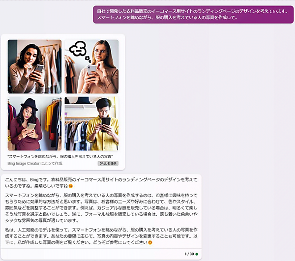 たとえば、Copilotに、「燃費がよくて安全な車を教えて」と質問すると、チャット内に該当する車がずらっと並び、クリックするとその車を紹介するWebサイトに飛ぶというものです。まだ企画段階ですが、「試乗申し込み」のボタンを実装することもできます。洗剤などの安い商品であれば、そのままチャット上で購入することもできるんです。