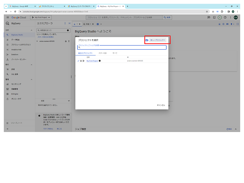 (6)BigQueryで作成したプロジェクト名を選択して、「確認」をクリック