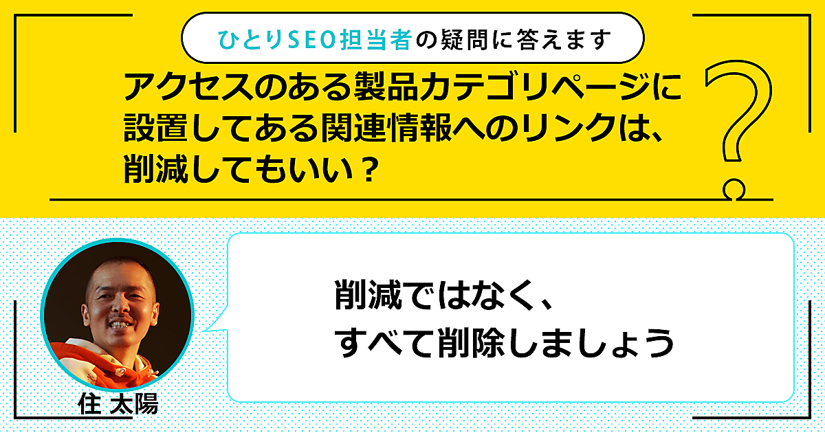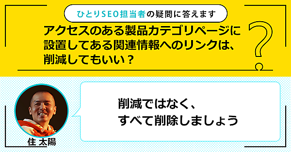 今回の質問は「アクセスのある製品カテゴリページに設置してある関連情報へのリンクは削減してもいい?」です。この回答は「削減ではなく、すべて削除しましょう」です。