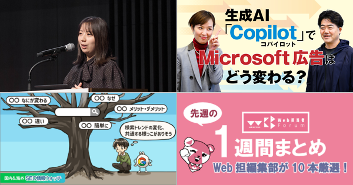Web 担当者 Forum に掲載された情報を毎週一度、まとめてご紹介するこのコーナー、今回は解説記事 5 本とニュース記事 5 本です。
