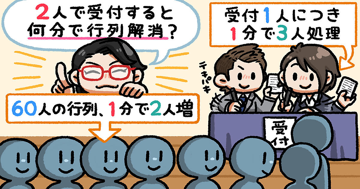 60人待ちの行列、1分間に2人ずつ増え、受付がピンチ!
