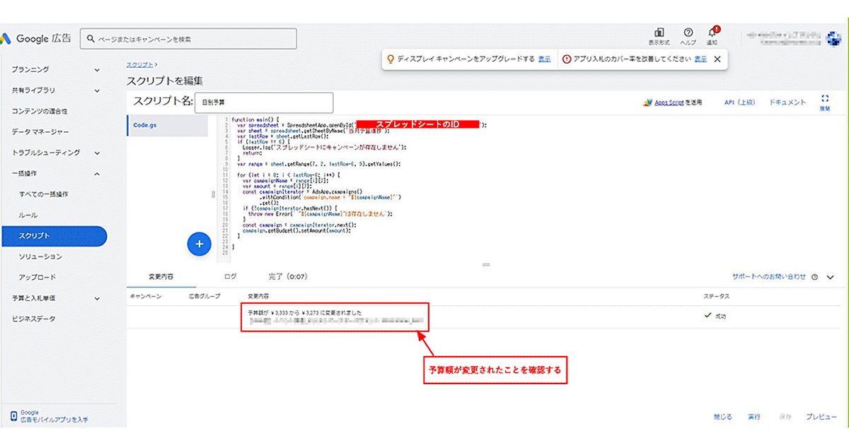 広告スクリプトで超時短! 日予算を自動で変更