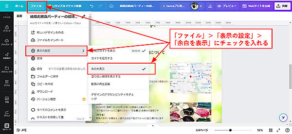 余白を表示して枠内にデザインをおさめる