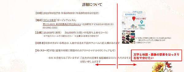 山本さん: 今回の場合は、詳細のページにある文字と地図・画像を左右に分けます。
