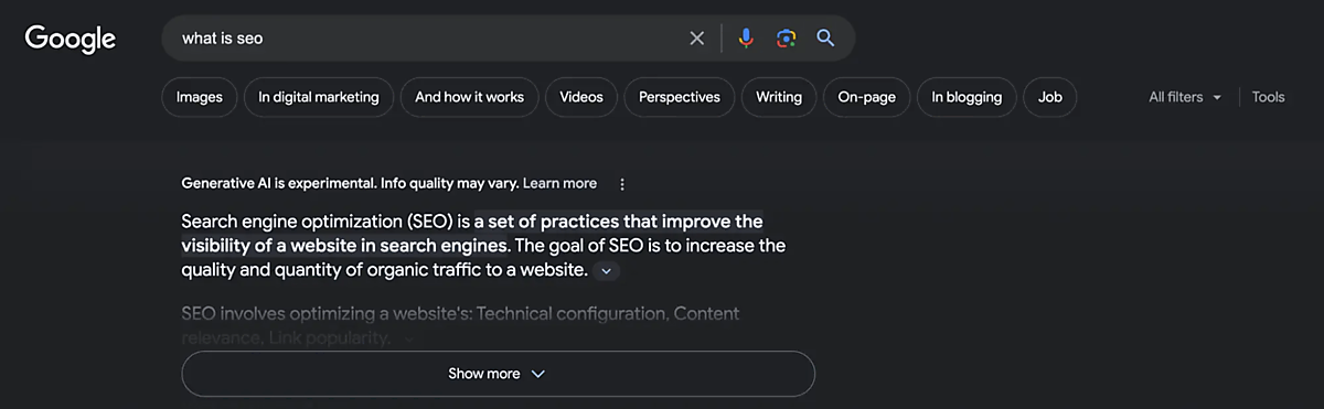 これまでもグーグルの検索結果に新たな機能が導入されたときに見てきたように、SGEがオーガニックトラフィックにさまざまな影響を与える可能性がある。SGEがサイトのオーガニックトラフィックに与える影響は、次の3つによって異なる: