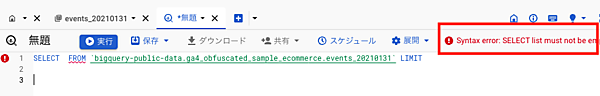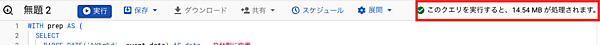使用するデータセット名がFROM句に入った状態で、SQLクエリを書く画面が表示されます。