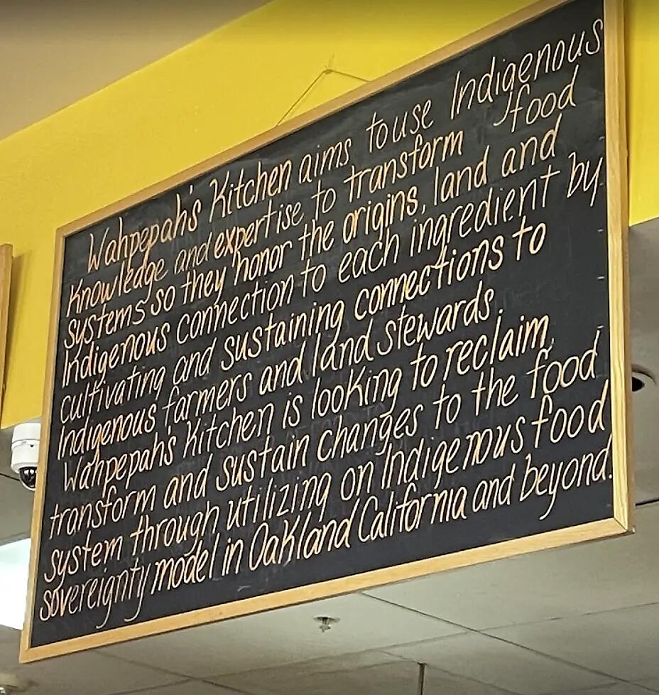 Wahpepah's Kitchenは、窓に「Native American Owned」(オーナーはネイティブアメリカン)と掲げることで、特別なアイデンティティと専門性を示す強力なシグナルを送っている。グーグルのビジネスリスティングに掲載する写真として賢明な情報だ。