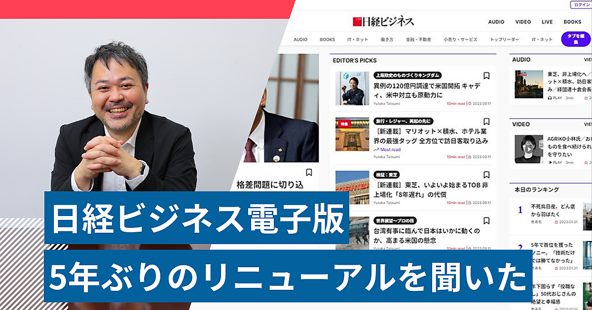 2024年2月20日にリニューアルした「日経ビジネス電子版」。2019年1月の日経ビジネス電子版創刊から5年ぶりのリニューアルとなる。今回のリニューアルの核になったのが、「読者体験ではなく、顧客体験の改善」だ。リニューアルのポイントや効果などについて、株式会社日経BP 日経ビジネス電子版編集長 原 隆 氏にお話を聞いた。