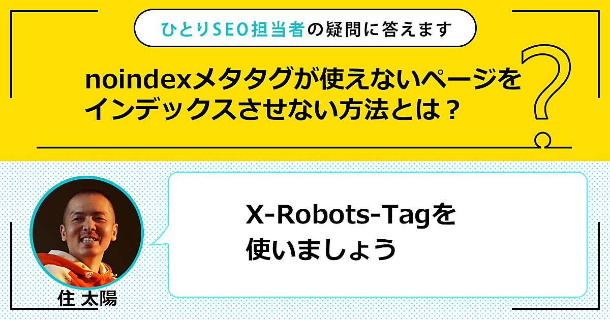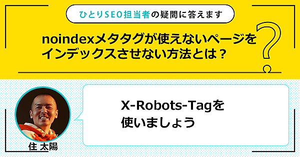 ひとりで頑張るSEO担当者さんの悩みに答える本連載。今回の質問は「noindexメタタグが使えないページをインデックスさせない方法とは?」です。この回答は「X-Robots-Tagを使いましょう」です。
