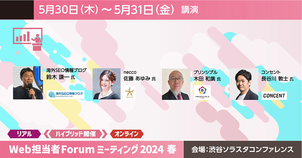 SoftBank、Rakuten、ANA、花王などが登壇する「Web担当者Forum ミーティング 2024 春」を5月30日(木)、5月31日(金)に開催します。