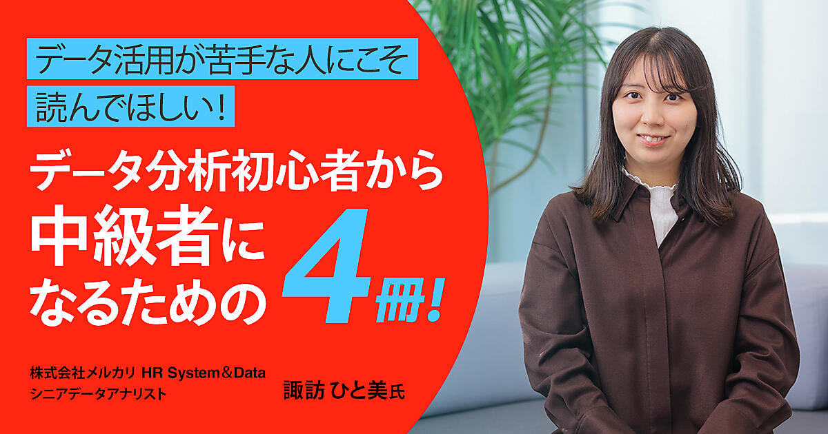 業界の最前線で活躍する方にオススメの書籍を教えてもらう本連載。今回は、メルカリでデータアナリストとして活躍している諏訪ひと美さんに、データ分析初心者に向けた「データ活用」に関するオススメ書籍を4冊紹介してもらった。