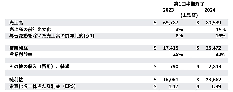 Alphabet全体の売上高は、前年同期比15.4%の805億3900万ドルで、市場予想785.9億ドルを大きく上回りました。純利益は236億6200万ドルで、なんと前年同期比57.2%増という結果でした。