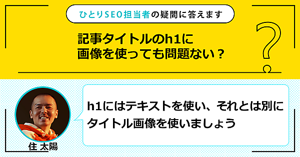 SEO担当者の質問に、SEOのエキスパートである住 太陽さんが実践的で有効な解決法を答えます。今回の質問は「記事タイトルのh1に画像を使っても問題ない?」です。
