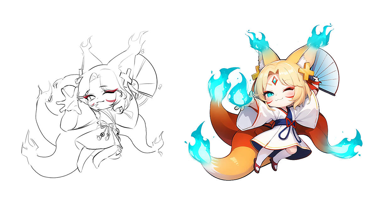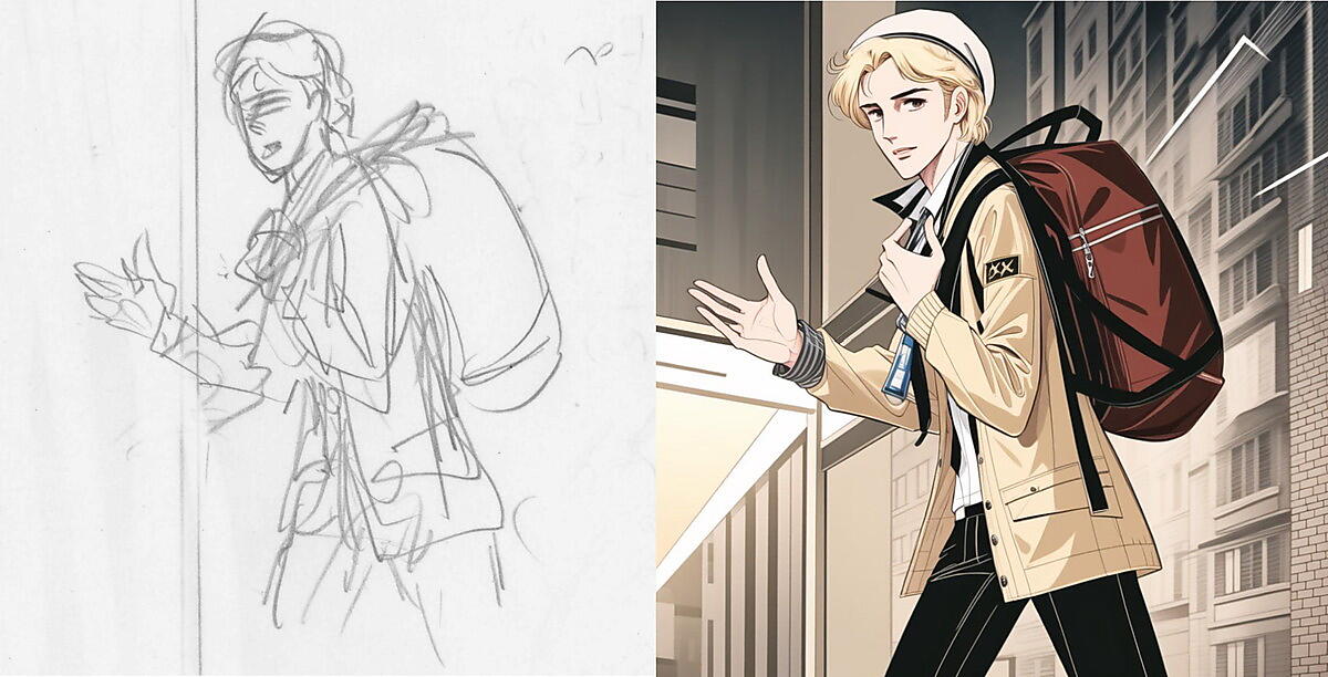 - 2をもとにAIがラフをブラッシュアップ・着彩して画を完成させる