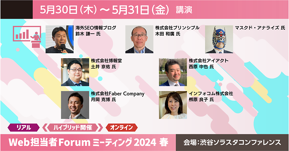 ソフトバンク、楽天グループ、ANA、花王などが登壇する「Web担当者Forum ミーティング 2024 春」を5月30日(木)、5月31日(金)に開催します。